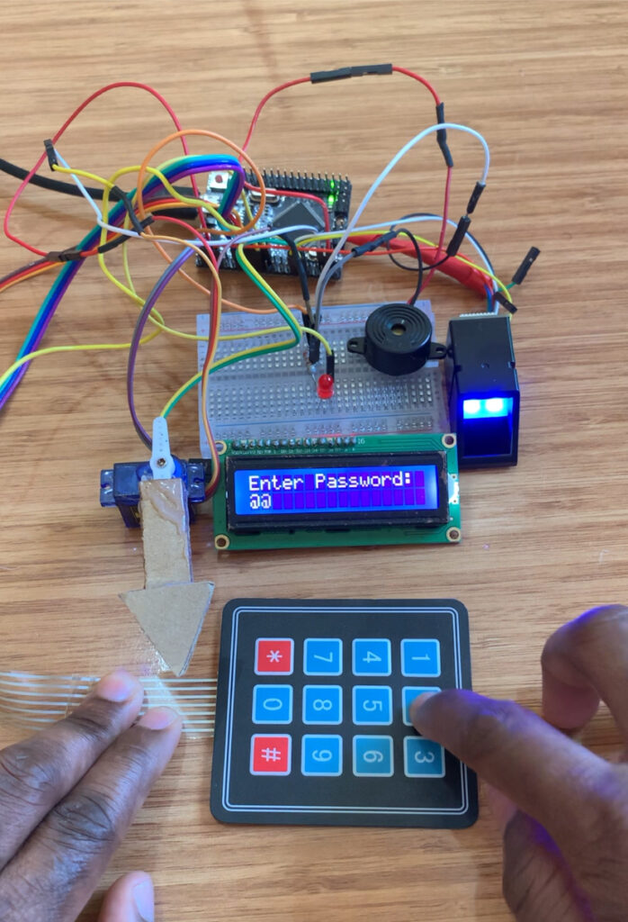 The Arduino will receive input from both the fingerprint sensor and the keypad, display relevant messages on the LCD, and control a servo motor to lock or unlock the safe based on the authentication results. A buzzer will generate an audible alert if an incorrect PIN code is entered or tampering is detected, while a red LED will light up when the correct code is entered or a valid fingerprint is recognized.