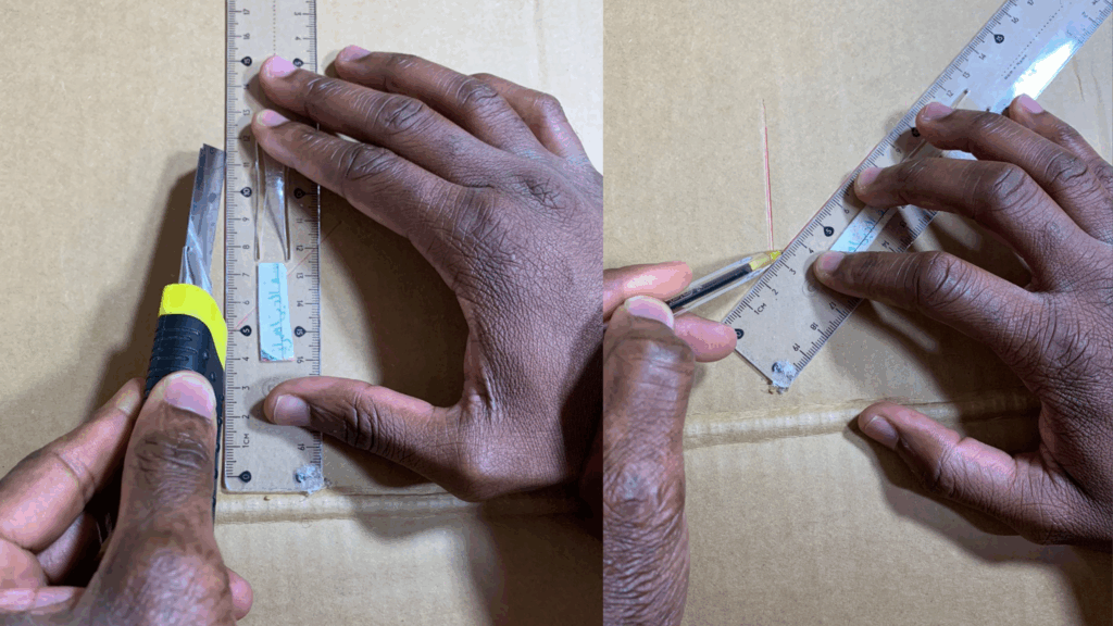 To build the house, I had to use cardboard since I didn’t buy a 3D printer machine. The most important part of the house is the door. While building it, I drew the shape of the door with a pen, of course, then I made the necessary cuts with a sharp knife to create a door that can open and close using the RC522 RFID and a tiny servo motor, SG90.