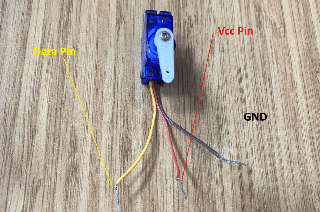 The SG90 servo motor that I’m using is a very tiny servo motor, and it has three cables: