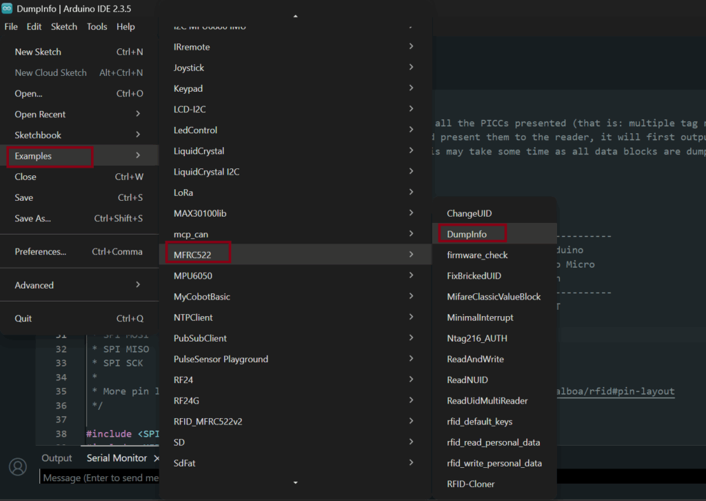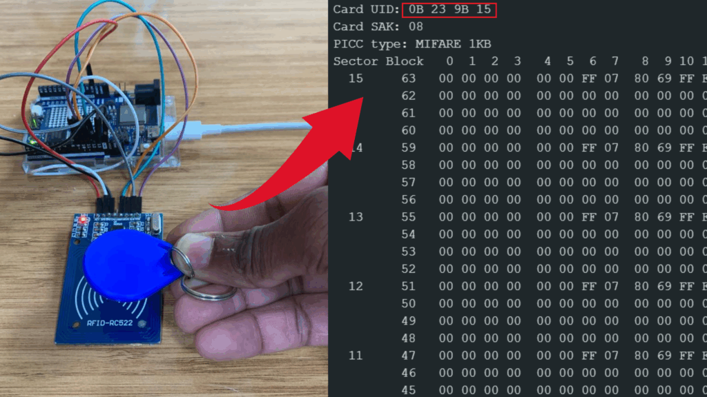 This sketch allows your Arduino to read RFID tags and display detailed information such as the UID and data blocks in the Serial Monitor.