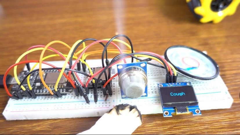 The OLED displays “Cough” and the DFPlayer Mini plays an alert sound once.