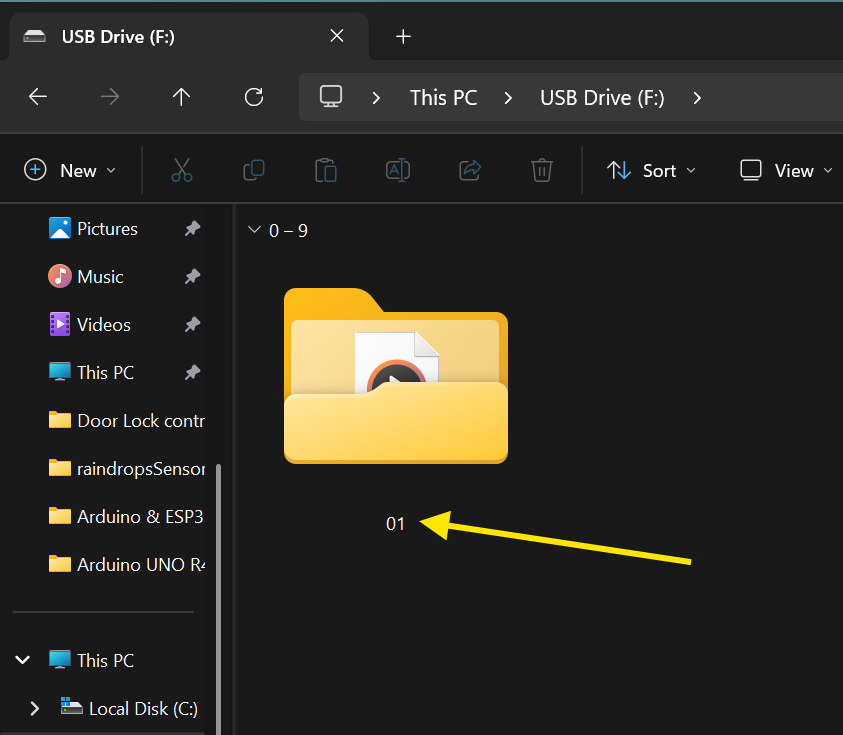 Rename Audio Files: These folders’ audio files should be renamed as 001.mp3, 002.mp3, 003.mp3, and so on, up to 255.mp3. WAV format (001.wav, 002.wav, etc.) is another option.